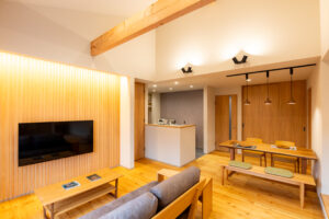 木の質感で、ゆったり落ち着いた家族の時間を演出